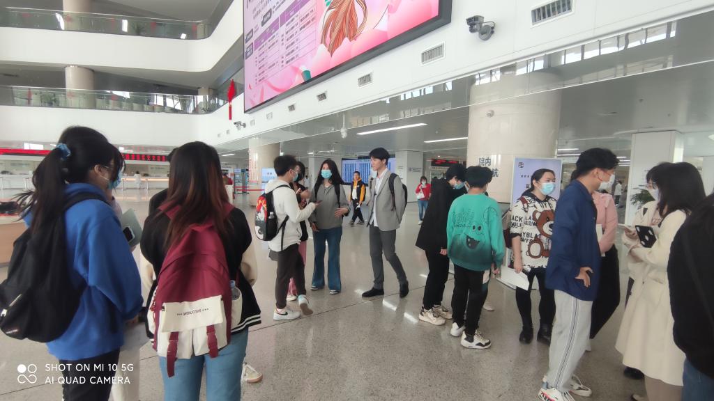 首先,安姗姗和同学们于太阳城官网附属医院南门门诊楼下集合点名、进行分组,简要地向同学们介绍太阳城官网附属医院的概况,详细地为同学们讲解实践课程的要求及注意事项。同学们在明确任务目标和时间安排后,带着思考问题进入医院,分组自主对医院进行探索。